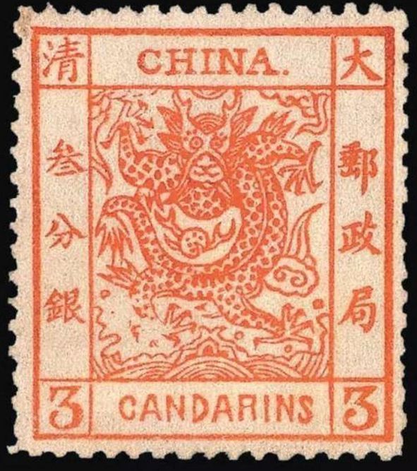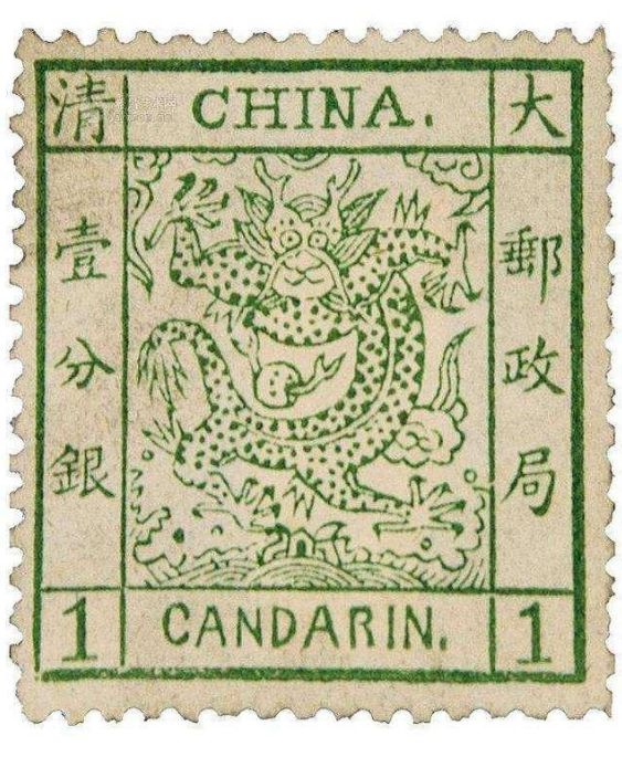 到了1878年7月下旬,清朝才在北京、天津、上海、烟台和牛庄(营口)等五处设立邮政机构,附属于海关内,其中上海海关造册处于当年以蟠龙为图案,印制了一套三枚的邮票。邮票图案正中绘一条五爪蟠龙,衬以云彩水浪,邮票的颜色和面值不同,面值用银两计算:一分银,是绿色的,寄印刷品邮资三分银,是红色的,寄普通信函邮资五分银,是桔的,寄挂号邮资于是,我国近现代史上的第一套邮票就这样诞生了。